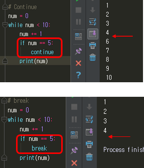 continue를 를 만나면 그 아래의 코드를 수행하지 않고,