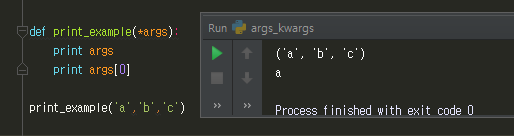 피라미터가 튜플 형태로 전달