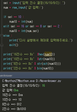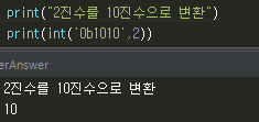 파이썬 16진수, 10진수, 8진수 , 2진수 변환 및 입/출력에 대해 기록합니다.