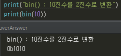 bin() : 10진수를 2진수로 변환
