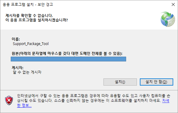 변경 후 설치파일 재실행 시 정상적으로 설치 버튼이 보여짐.
