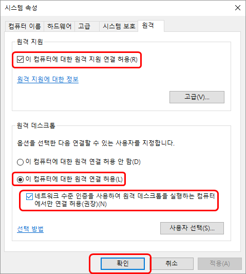 [Win10] Home/Pro 버전 원격 데스크톱 연결 방법